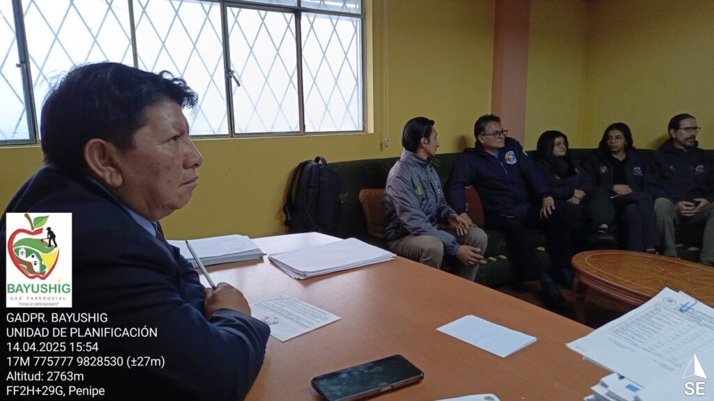 El Gobierno Autónomo Descentralizado Parroquial Rural (GADPR) de San Antonio de Bayushig recibió con gran interés la visita de representantes de la Escuela Superior Politécnica del Ejército (ESPE). El objetivo principal de este encuentro fue socializar el valioso trabajo que la ESPE ha estado desarrollando en el ámbito del turismo, con un enfoque específico en la identificación y desarrollo de productos y circuitos turísticos, así como en el proceso de vinculación que la universidad mantiene a nivel parroquial y cantonal.